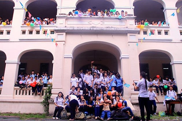 Hình ảnh chia tay tuổi học trò. Teen khối 12 Lê Hồng Phong TP.HCM 'quậy' khi chia tay